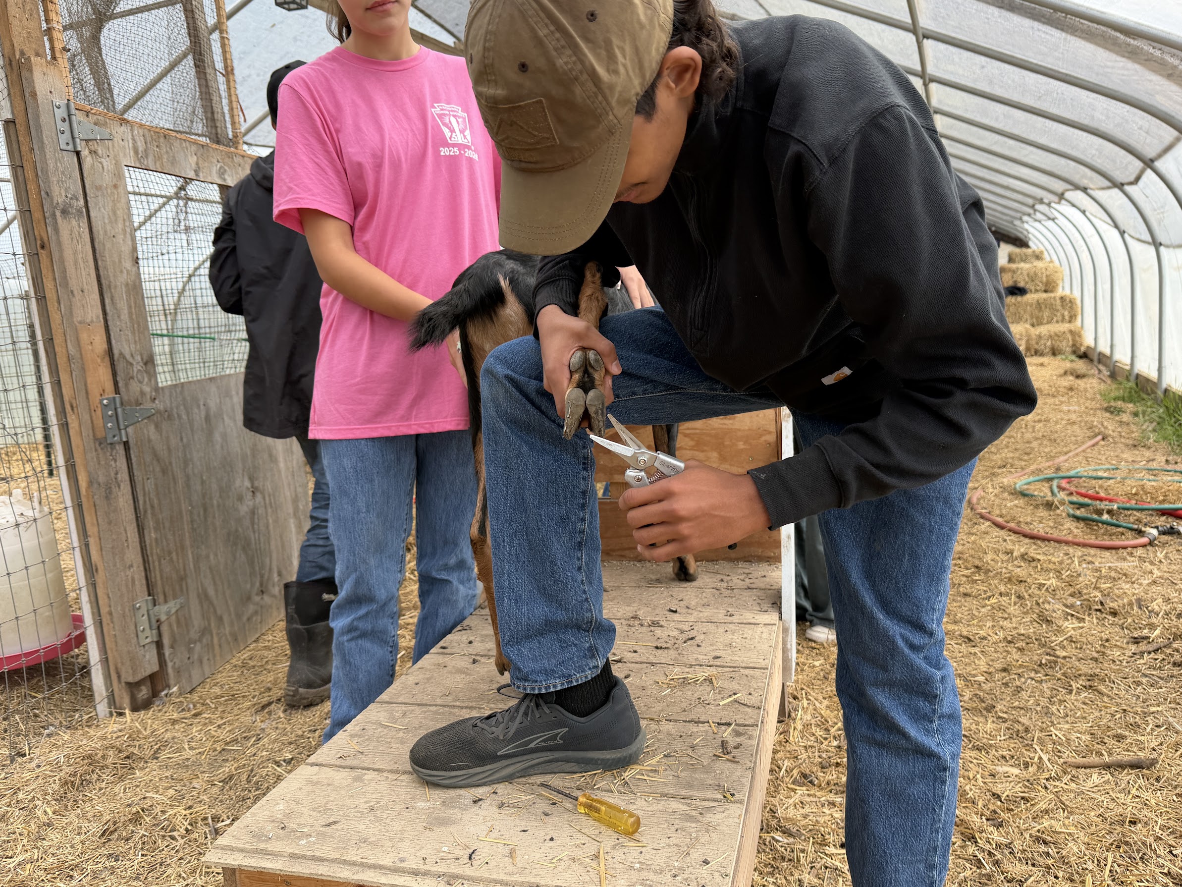 These interns are exploring diverse career paths, and in today’s uncertain world, the farm offers them a window into possibilities they might not have considered. Last Saturday, for example, we demonstrated vaccinations, conducted hoof care on goats, and discussed diagnosing ailments and ensuring humane treatment—skills that translate across veterinary science, healthcare, animal welfare, and beyond.