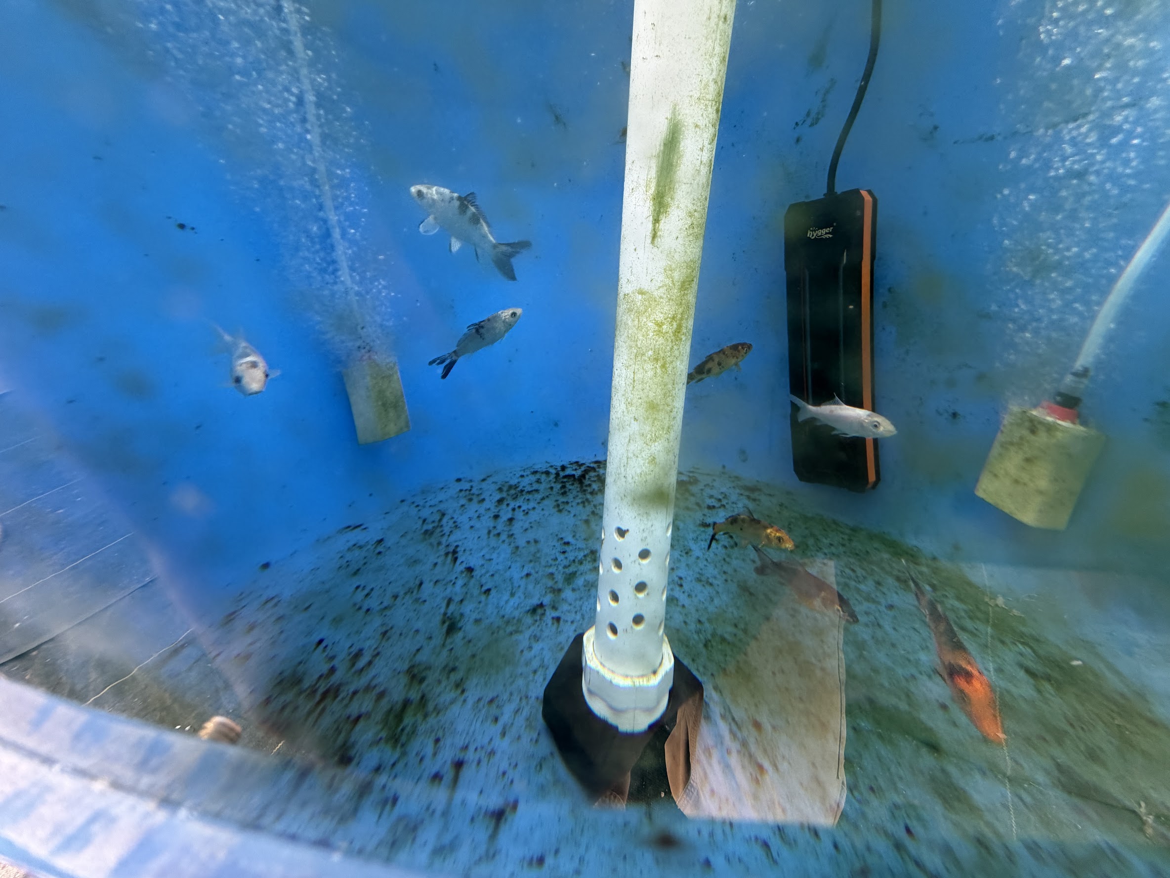 We’re raising eight koi as our “pets” to get the good bacteria started and generate some preliminary nutrients for the system, as seen here. In the coming weeks, we plan to bring in bluegill as our freshman class of fish.
